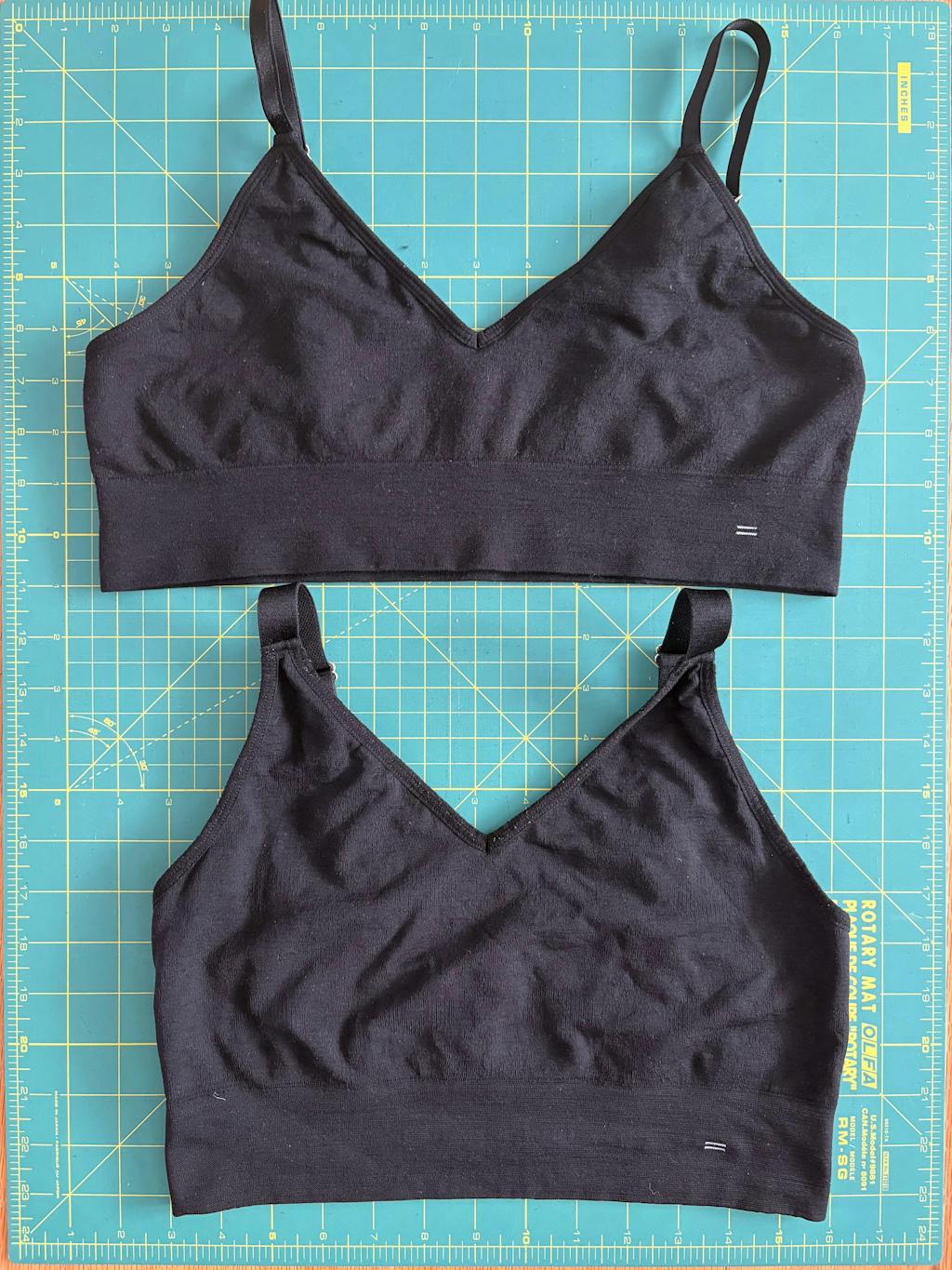 Merino Busty Bra strap detail in black, wireless seamless support for larger busts.